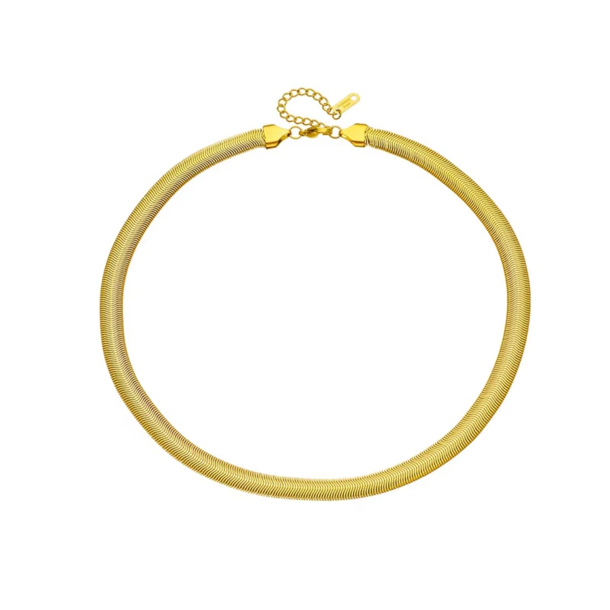 The Serica Bracelet features a fluid, snake chain design that drapes the wrist with smooth, shimmering elegance. Finished in radiant gold and available in two sizes, it offers a custom feel with timeless appeal. Wear it solo for subtle sophistication or layer it to add a touch of sleek texture to any look.