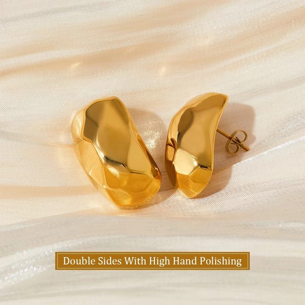 The Angela Earrings are a striking blend of modern artistry and timeless elegance. With their bold, sculpted silhouette and glossy finish, these statement earrings capture the organic beauty of hand-shaped metal while radiating contemporary sophistication.