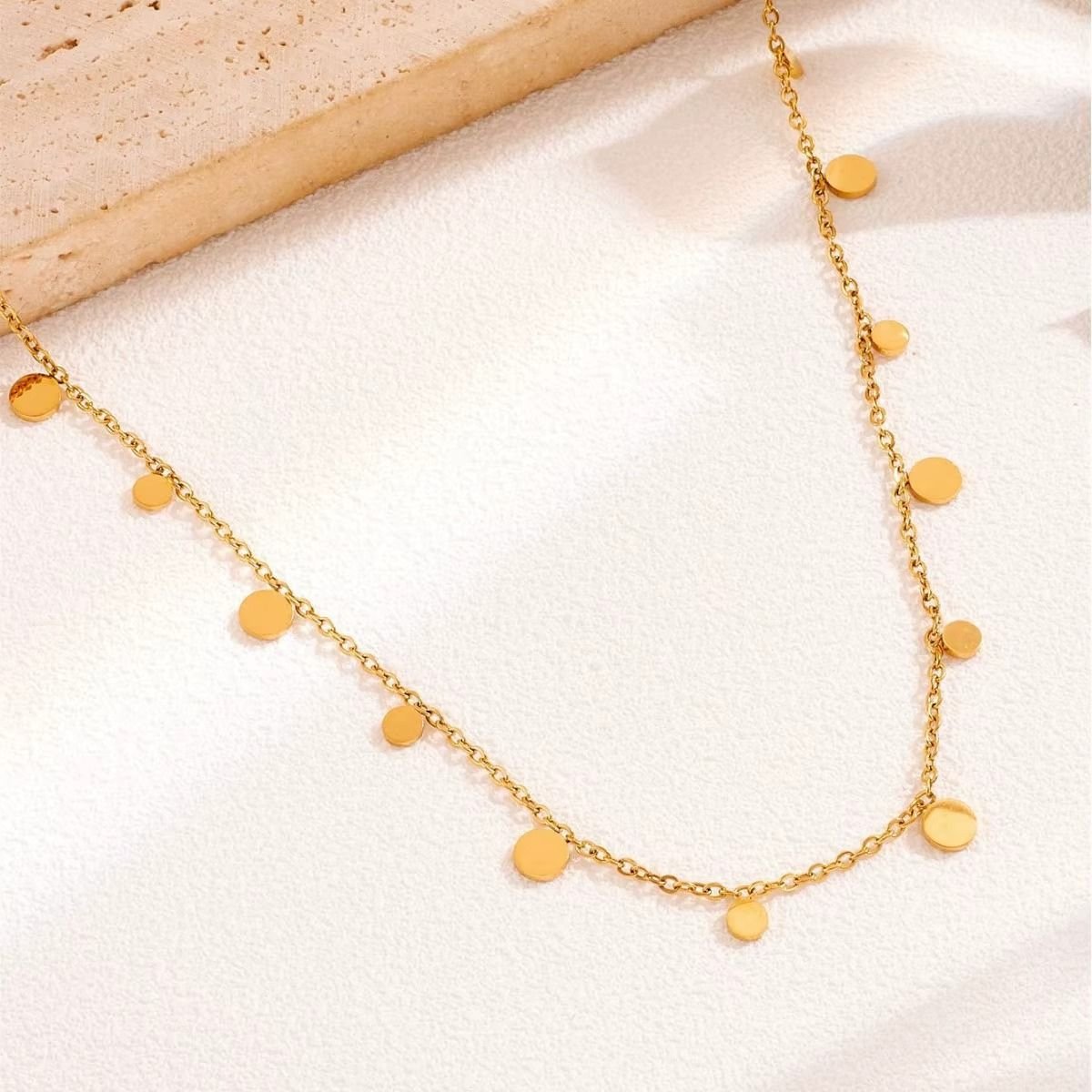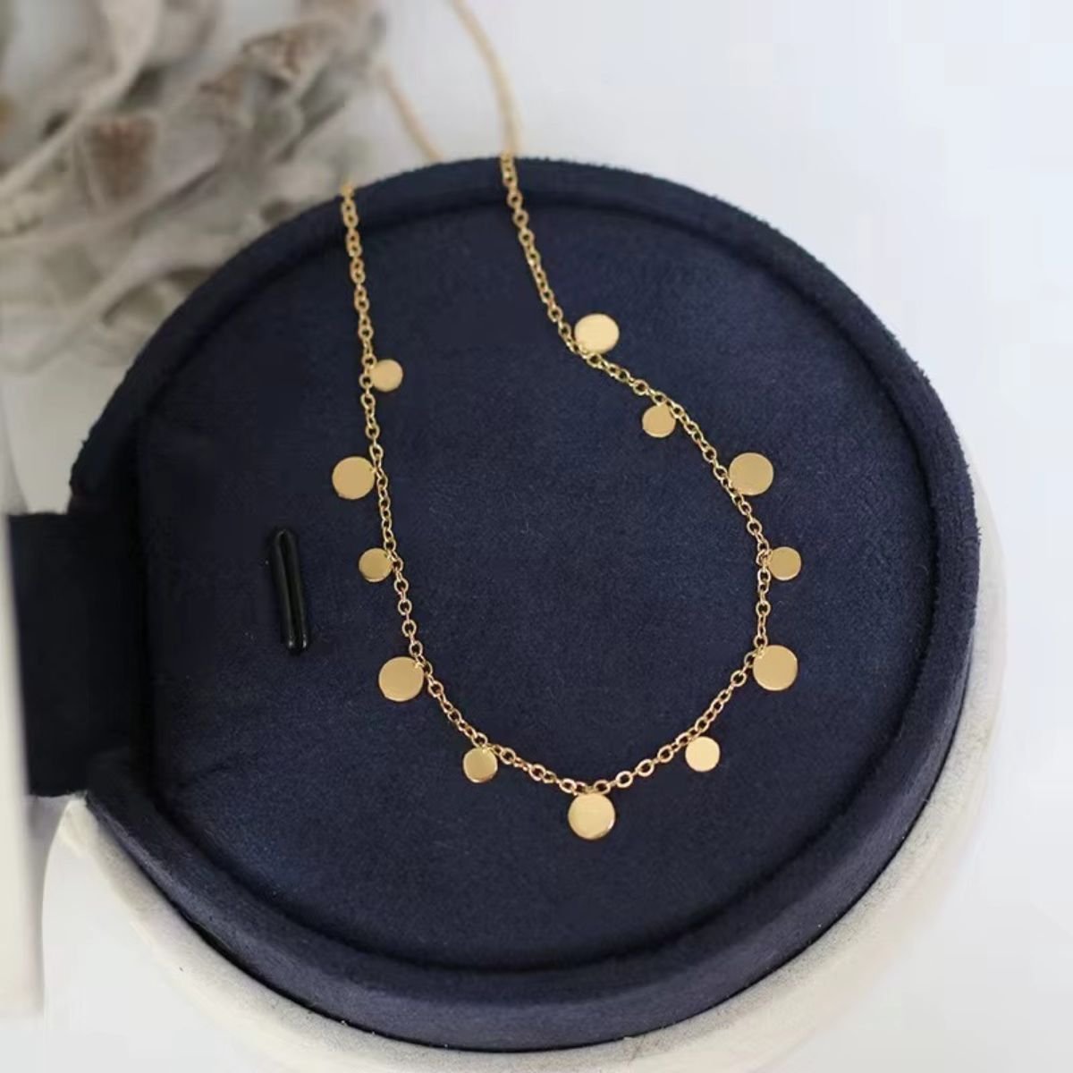 The Auralis Necklace is the perfect balance of minimalism and elegance, featuring a delicate gold vermeil chain adorned with polished disc charms that catch the light with every movement. Designed for the modern woman, this gold disc necklace adds a touch of effortless style to both everyday outfits and evening looks.