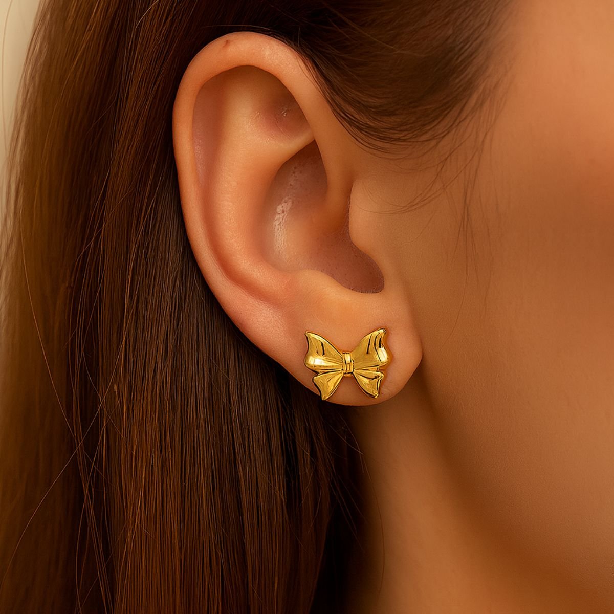 Made with a 316L stainless steel base and finished with 18k PVD gold plating, these earrings are hypoallergenic, waterproof, and tarnish-resistant — offering durability along with lasting shine. Whether worn solo for a minimal look or styled with layered studs, the gold bow earrings are a must-have accessory in every jewellery collection.