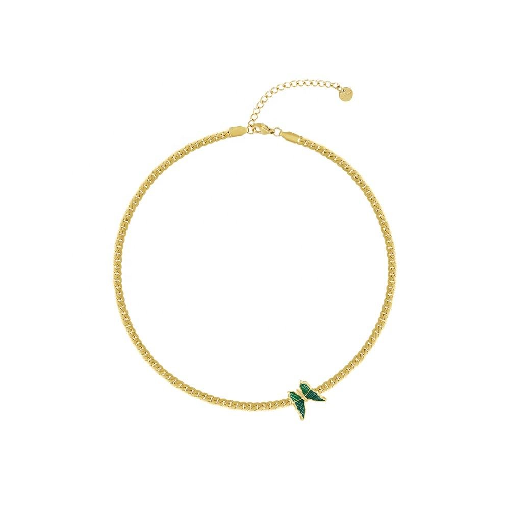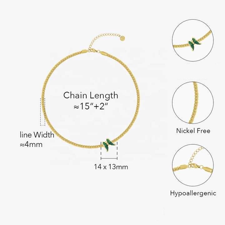The Butterfly Choker Necklace is a delicate yet striking piece, featuring a single green butterfly charm centered on a fine gold vermeil choker chain. Radiating freshness and symbolism, it’s a nod to transformation, renewal, and effortless beauty.