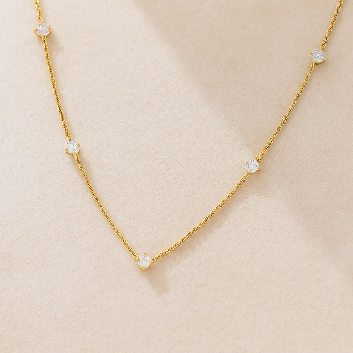 The Cira Necklace is the epitome of elegance in minimalism. Designed for women who adore subtle sparkle, this delicate necklace features a fine gold vermeil chain adorned with evenly spaced Swarovski stones that shimmer beautifully with every movement.