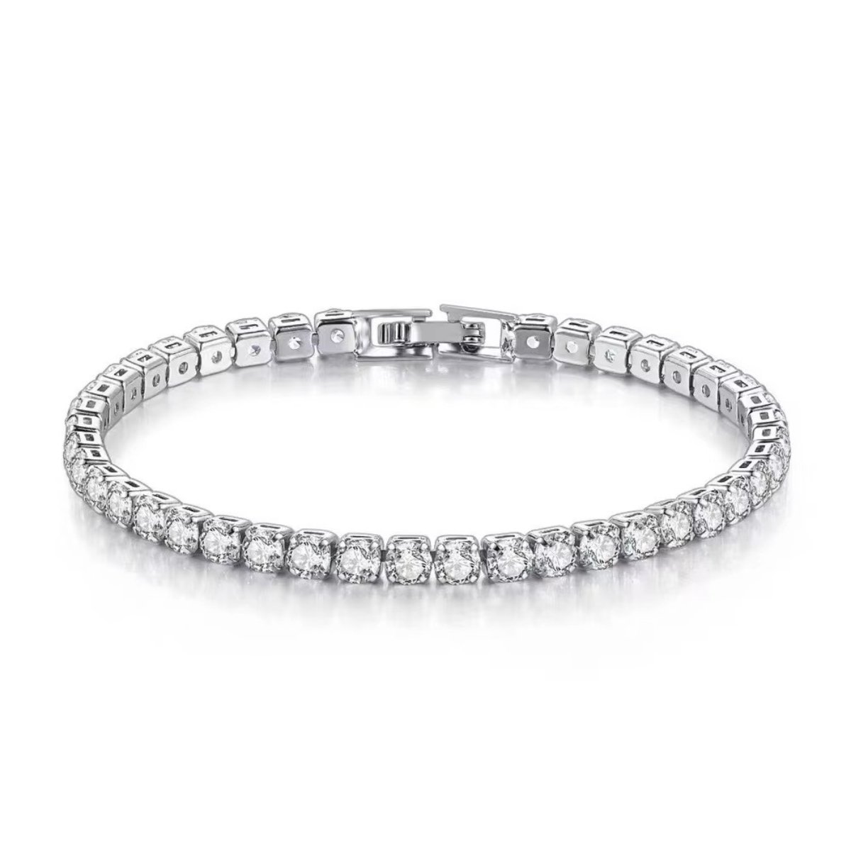 Delicate yet radiant, the Claria Bracelet features a slim, single row of sparkling white cubic zirconia set in a graceful white gold–plated finish. Designed for subtle sophistication, it adds a touch of shimmer to any look with its refined, feminine silhouette. Perfect worn alone for understated elegance or layered to create a soft, luminous stack.