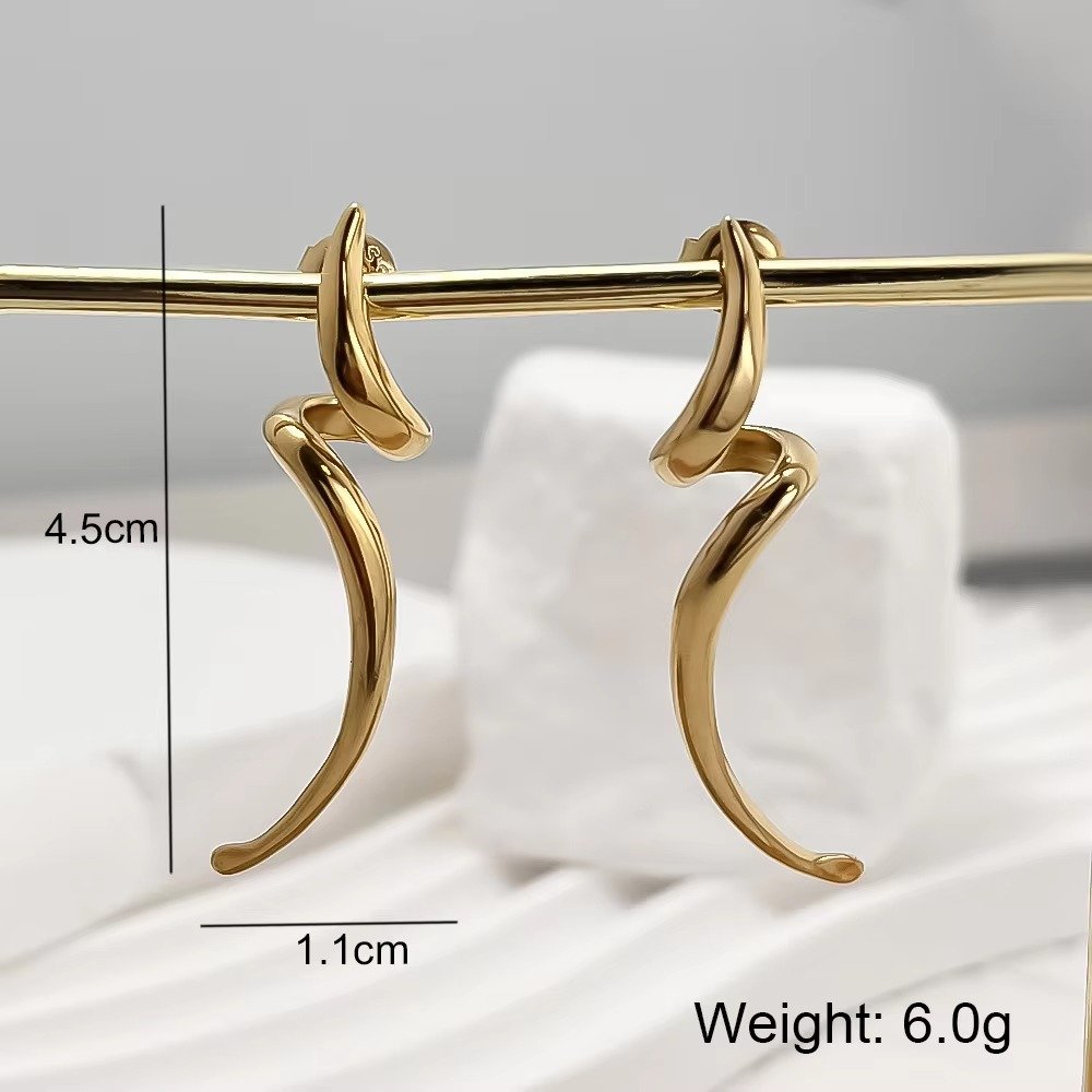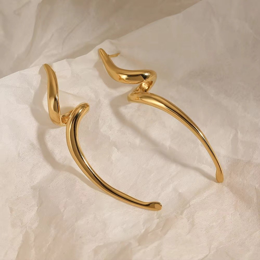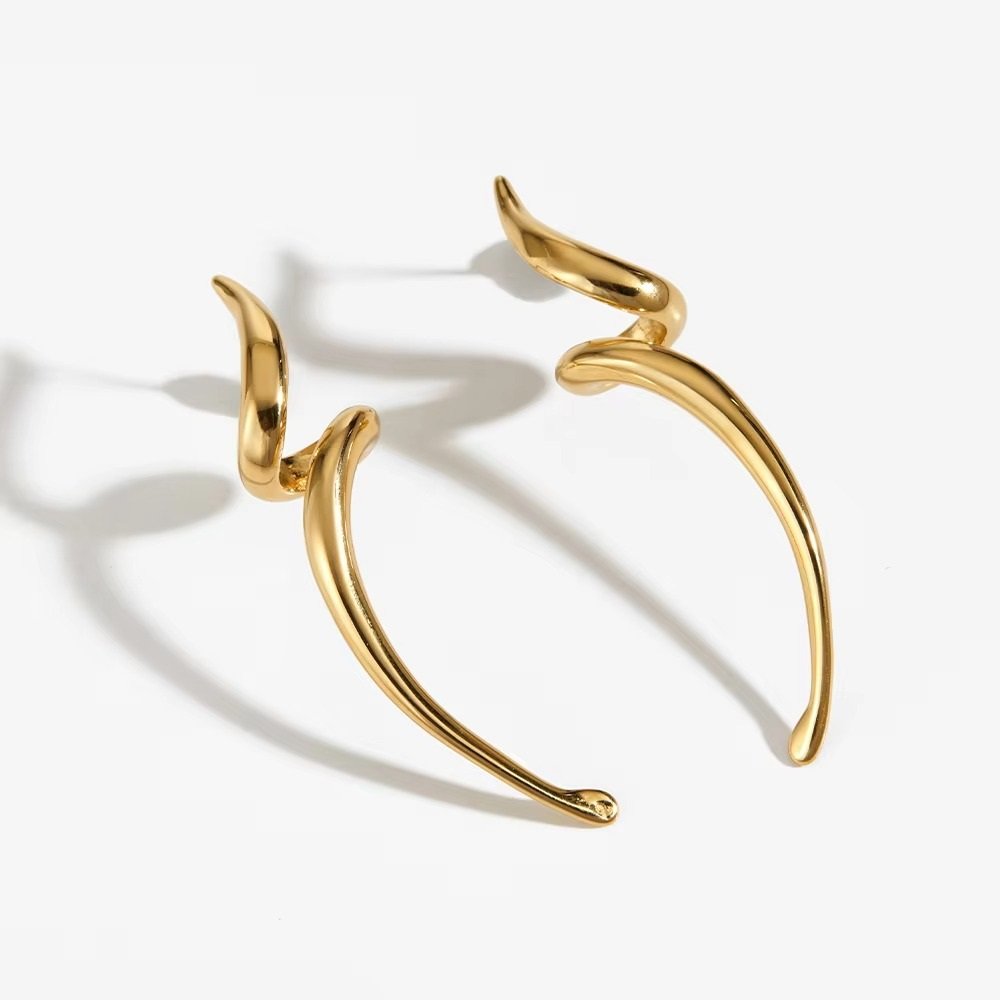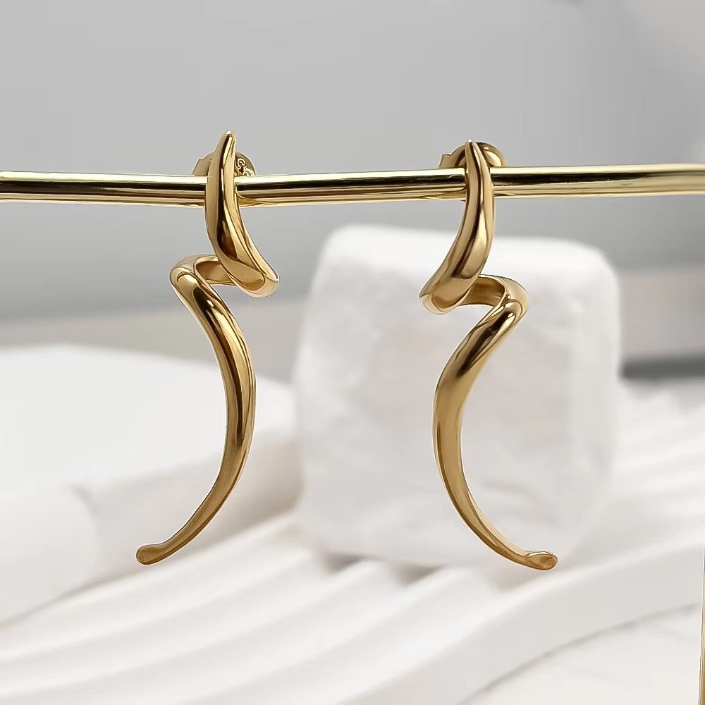 Danza Tassel is a pair of elegant, modern earrings crafted from polished gold. Their design features fluid, twisting lines that resemble flowing tassels, giving them a dynamic and sophisticated appearance. The sleek, minimalist aesthetic makes them versatile for both everyday wear and special occasions, adding a touch of contemporary luxury to any outfit.