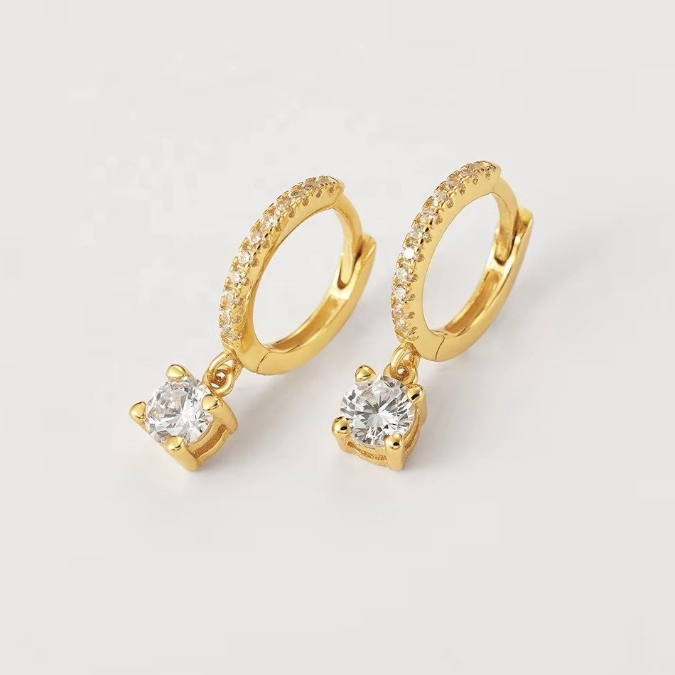 Dew Drop Luxe are exquisite hoop earrings crafted in luxurious gold-tone metal, featuring a row of sparkling pavé-set crystals along the front. Dangling from each hoop is a stunning, round-cut cubic zirconia that mimics the brilliance of a dewdrop, adding a touch of elegance and sophistication. Perfect for elevating any ensemble, these earrings combine timeless design with a glamorous sparkle, making them ideal for both everyday wear and special occasions.