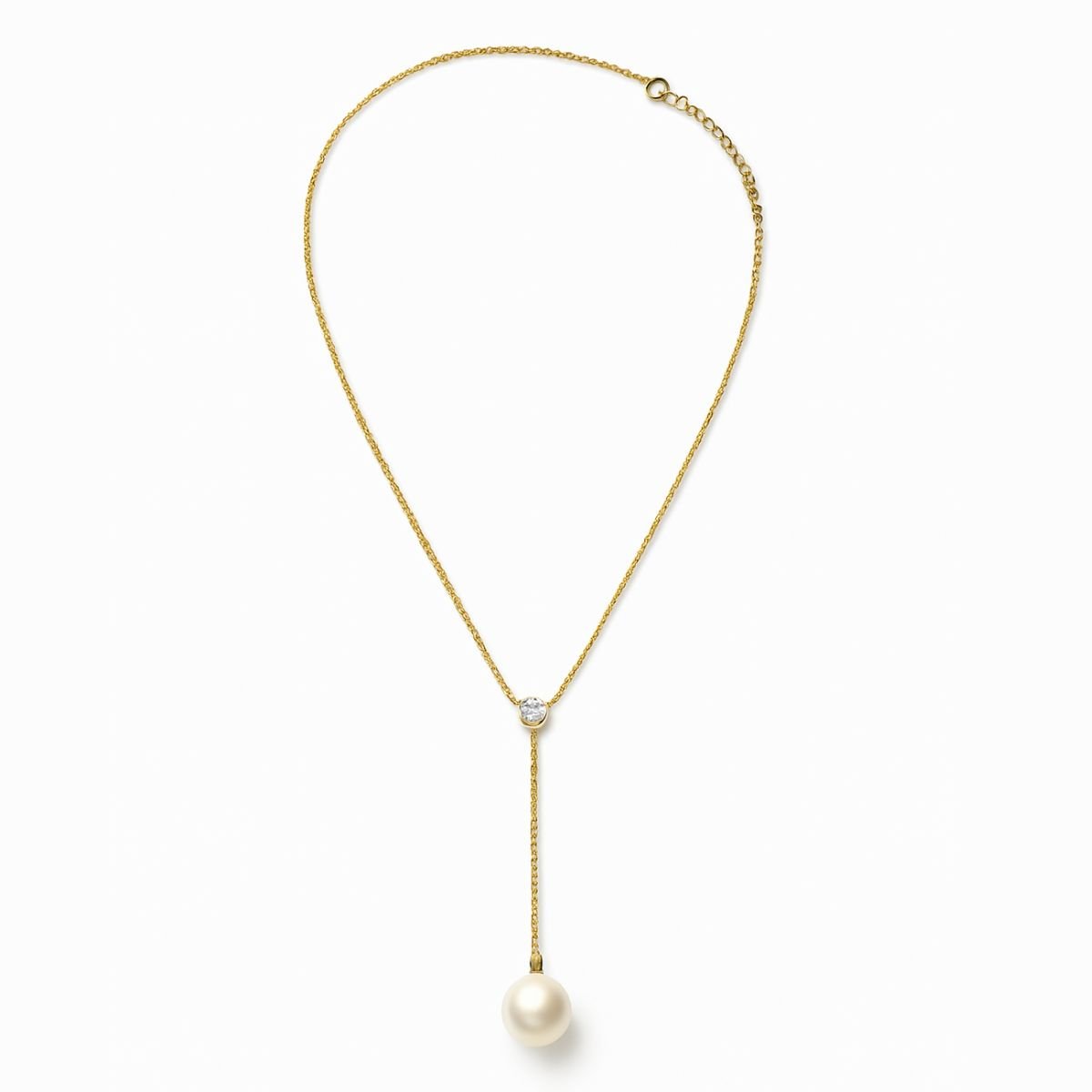 Élora Pearl Drop Necklace – Zircon & Pearl Pendant in Gold Vermeil