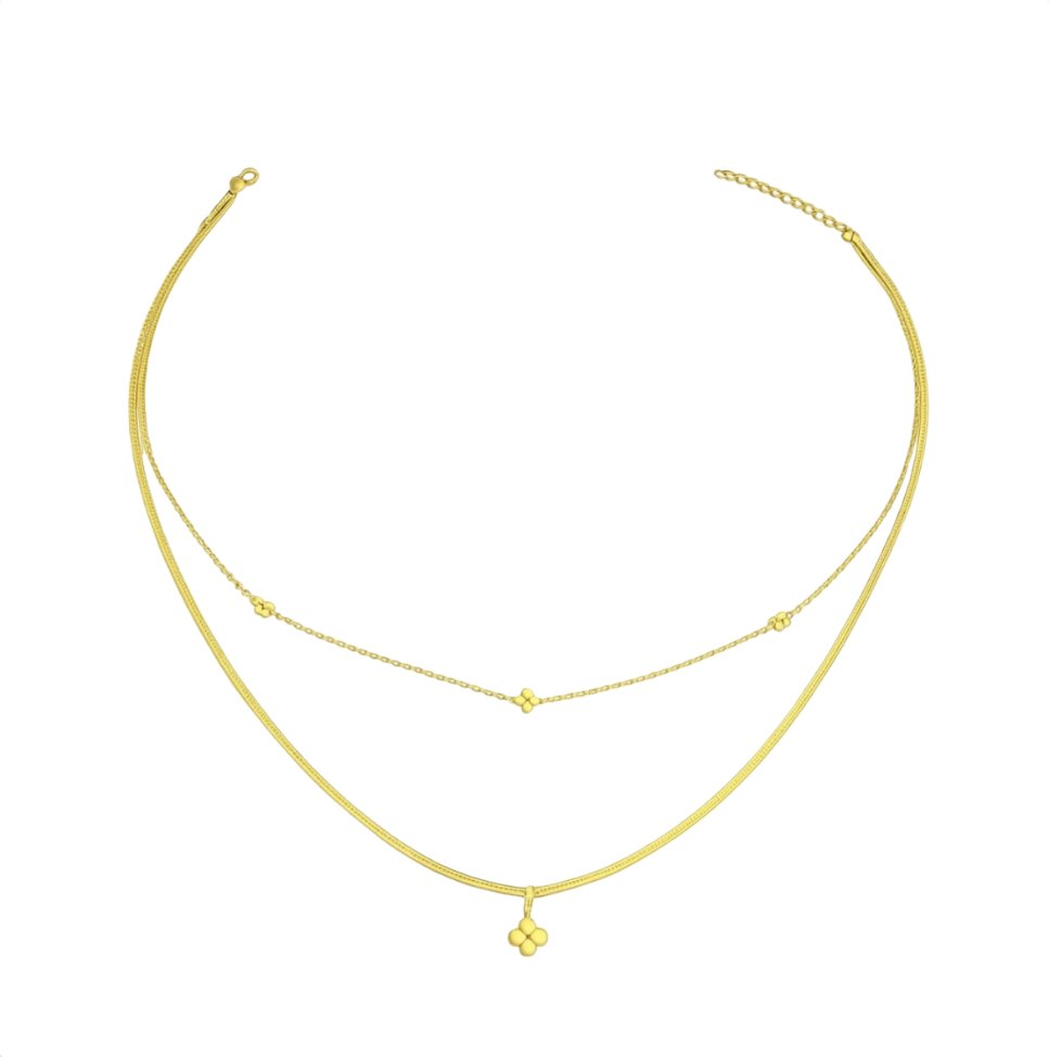 Flora Belleza Double Stack Necklace – Dainty Clover Charm