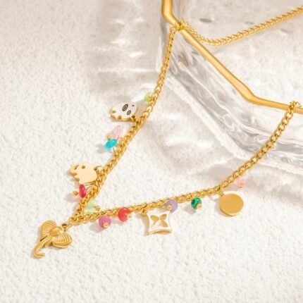 Perfect for everyday wear, vacations, or festive evenings, the Gioiella charm necklace can be styled solo for a refined statement or layered with other gold necklaces for a fashion-forward stacked look. Its lightweight design makes it a go-to piece for both casual and special occasions.