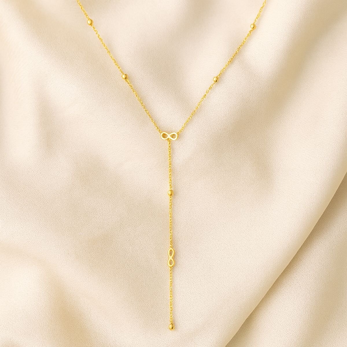 Perfect for both everyday wear and special occasions, the Infinia Necklace layers beautifully with dainty gold chains or can be styled solo as a statement Y necklace. Its elegant design also makes it the perfect finishing touch for work outfits, evening dresses, or weekend chic looks.