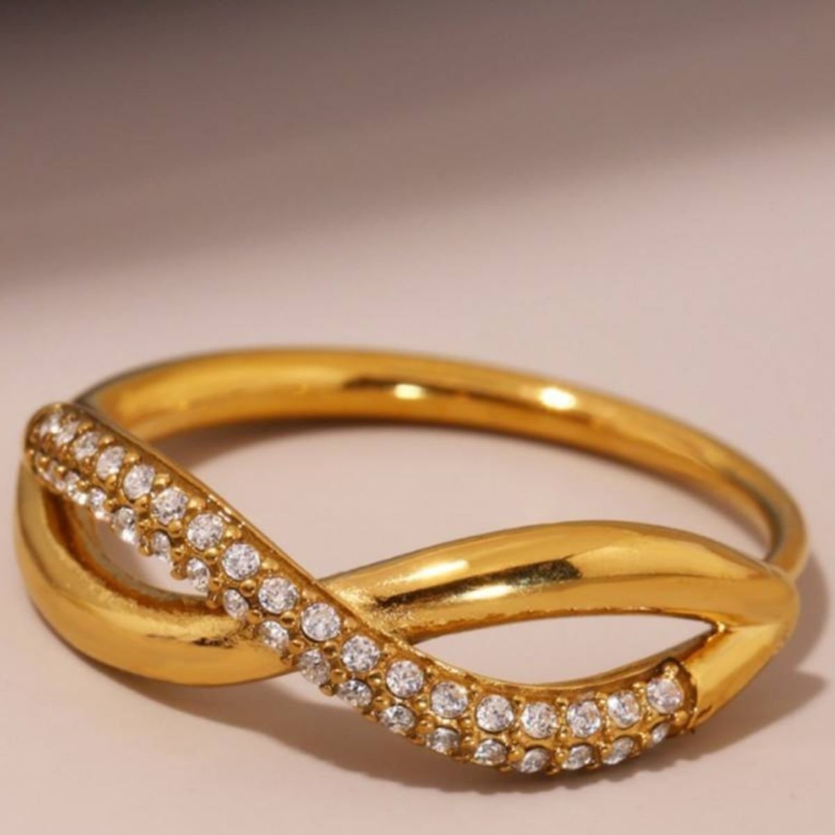 Crafted from 316L stainless steel and finished with 18k PVD gold plating, the Infinitia Gold Ring is waterproof, hypoallergenic, and tarnish-resistant—ensuring everyday durability with a luxurious finish. Its sleek silhouette makes it perfect for daily wear, while the sparkling zirconia accents add a touch of brilliance for special occasions.