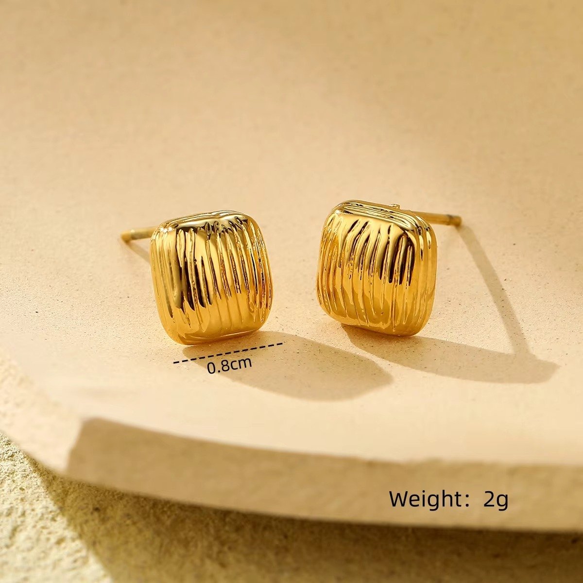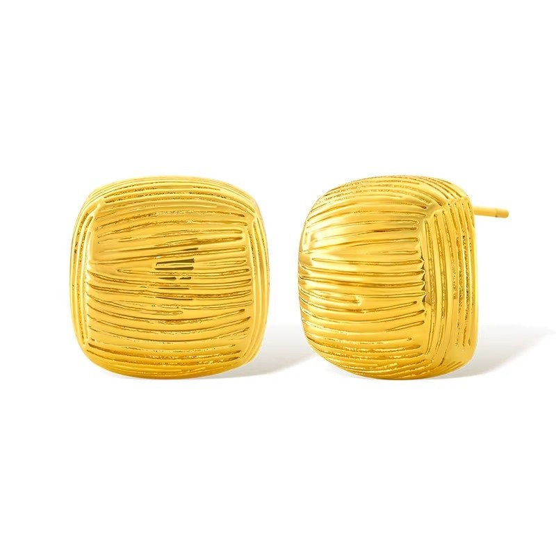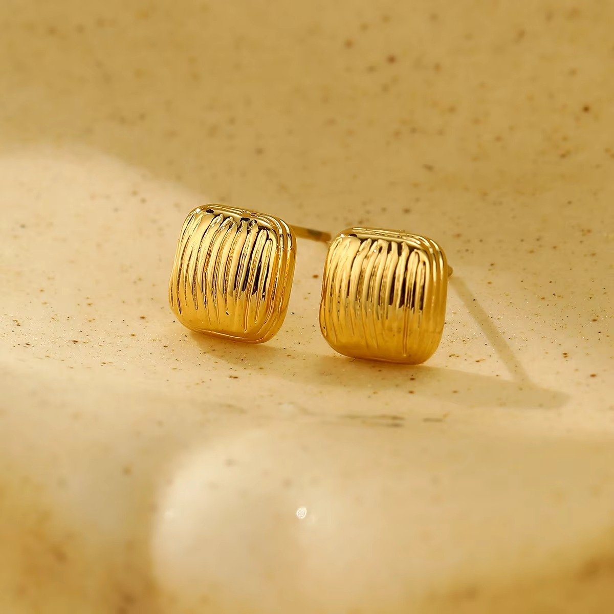 Lino Studs are elegant gold earrings featuring a sleek, square-shaped design with subtle, textured lines running across the surface. Their minimalist yet sophisticated look makes them perfect for everyday wear or adding a refined touch to any outfit. These studs combine timeless style with modern simplicity, making them a versatile addition to any Jewellery collection.