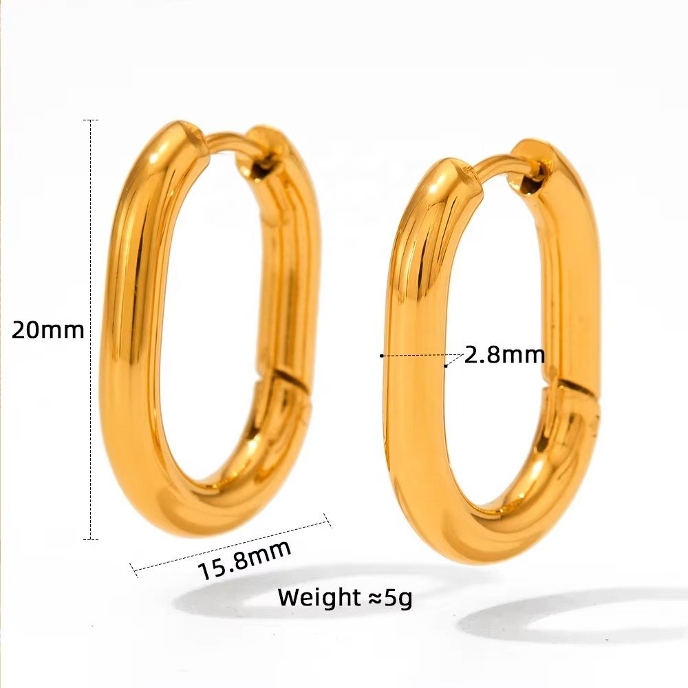 The  Lithe Hoops bring a modern edge to classic design with their bold, U-shaped silhouette and high-polish gold finish. Crafted for everyday elegance, these lightweight earrings offer a sleek, sculptural look that’s both minimal and striking. Perfect for elevating any outfit, the Lithe Hoops are your go-to for effortless style with a contemporary twist.