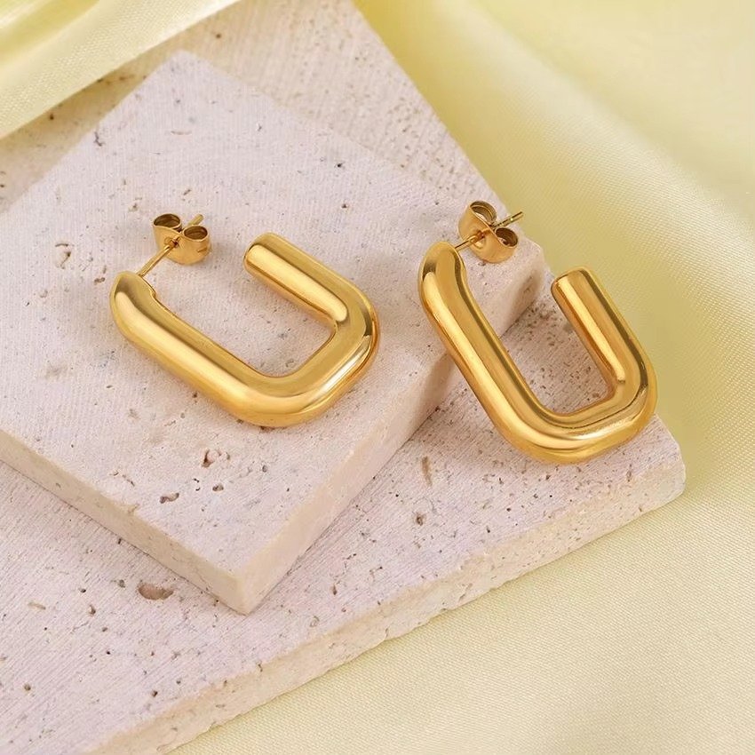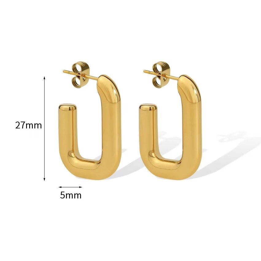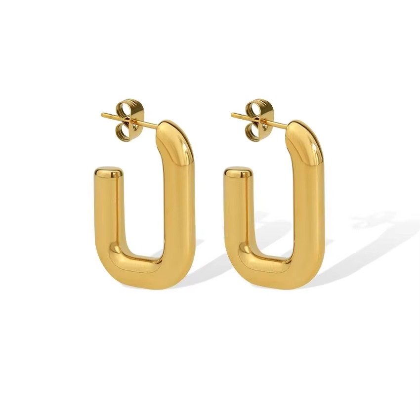 The Linear Luxe Hoops bring a modern edge to classic design with their bold, U-shaped silhouette and high-polish gold finish. Crafted for everyday elegance, these lightweight earrings offer a sleek, sculptural look that’s both minimal and striking. Perfect for elevating any outfit, the Lithe Hoops are your go-to for effortless style with a contemporary twist.