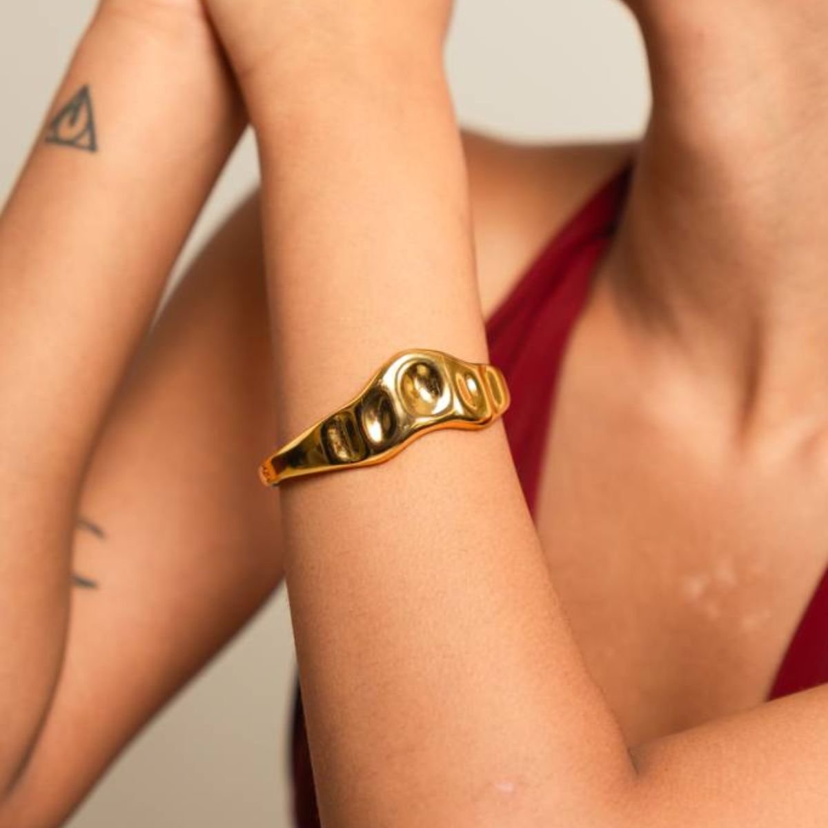Crafted with precision from 316L stainless steel and finished in 18k PVD gold plating, the Lunaire Kada is waterproof, hypoallergenic, and tarnish-resistant, ensuring lasting brilliance and durability. Its lightweight yet bold design makes it the perfect statement piece for both everyday wear and special occasions.