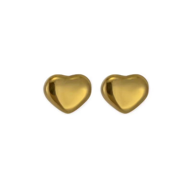 Luva Studs are charming gold earrings shaped like small, smooth hearts with a glossy, polished finish. Their simple yet adorable design makes them perfect for expressing love and affection. These heart-shaped studs add a sweet touch to any outfit, making them ideal for everyday wear or special occasions.