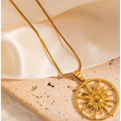 Radiating warmth and elegance, the Natalie Sunray Necklace features a striking sun disc pendant, etched with fine detailing to catch the light beautifully from every angle. Crafted in glowing gold vermeil and suspended from a refined chain, it brings a subtle statement of energy, strength, and renewal.
