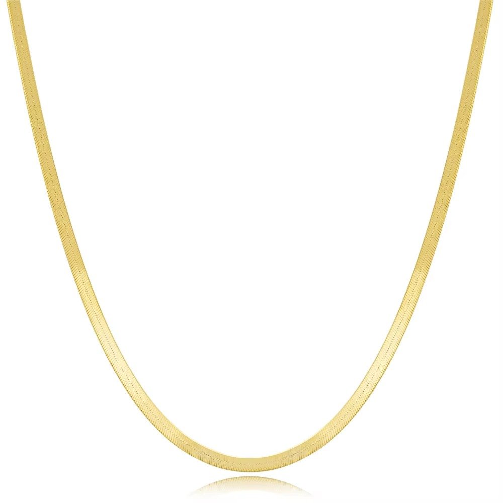 Sleek, fluid, and effortlessly elegant, the Naya Snake Flat Chain Necklace is a refined staple crafted in high-quality gold vermeil. Featuring a polished, flat snake chain design, it drapes smoothly along the neckline with a clean, modern silhouette and subtle shine.