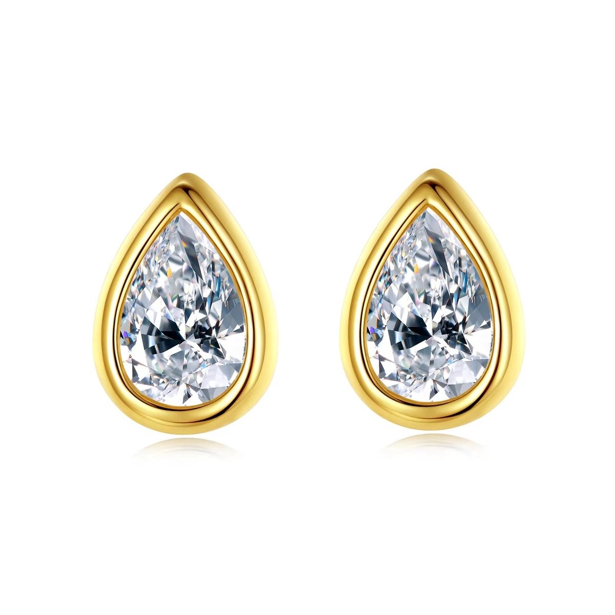 Perlume Studs are exquisite earrings featuring a teardrop-shaped, sparkling clear gemstone set in a sleek gold-tone bezel. The elegant design combines simplicity with sophistication, making them perfect for everyday wear or special occasions. Their timeless style adds a touch of refined glamour to any outfit.