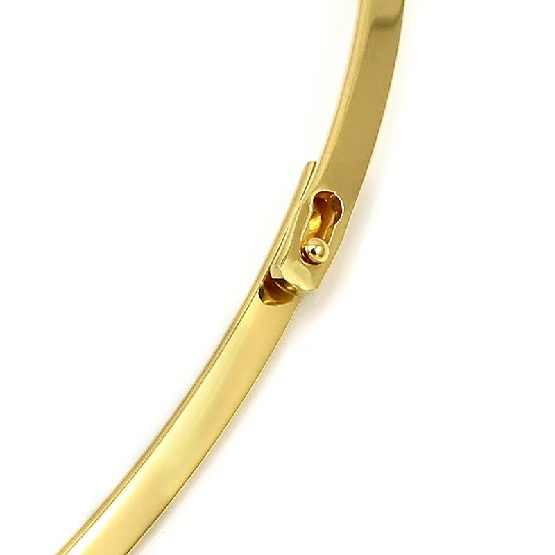 Channeling timeless elegance with a hint of ancient allure, the Elena Clasp Choker features a sleek, round gold design reminiscent of Egyptian-inspired styles. Its smooth, polished finish and sculptural silhouette sit gracefully along the neckline, offering a bold yet refined look.