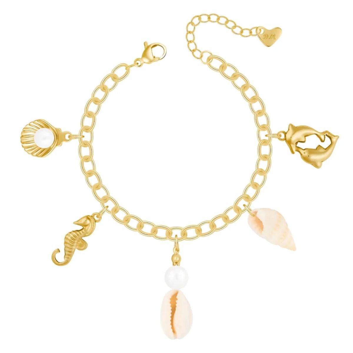 Sea Shell Charm Bracelet – Gold Vermeil Bracelet with Ocean-Inspired Charms