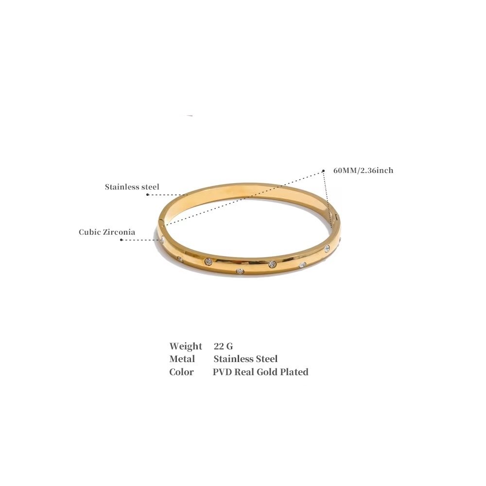The Soraya Kada is a radiant blend of elegance and bold design. Featuring a wide, contoured band adorned with a row of shimmering stones, it brings effortless glamour to the wrist. The smooth, high-polish finish enhances its luxe appeal, while the structured silhouette makes it perfect for both statement styling and refined everyday wear. The Soraya Kada is where timeless beauty meets modern sophistication.