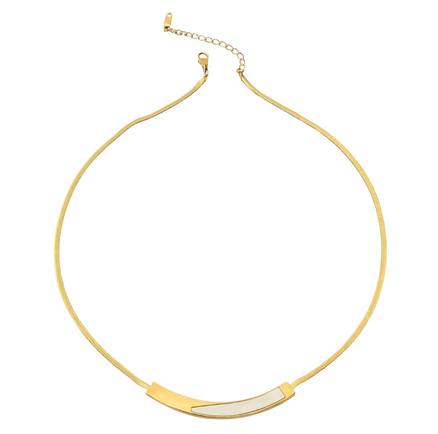 Measuring 40 cm + 5 cm extension, the Tessa Madre Necklace sits gracefully along the collarbone, allowing the polished mother of pearl bar to take center stage. Wear it solo for a minimalist chic look or layer it with dainty gold chains for a modern, stacked effect. From boardroom meetings to evening soirées, this necklace transitions seamlessly across occasions with understated sophistication.