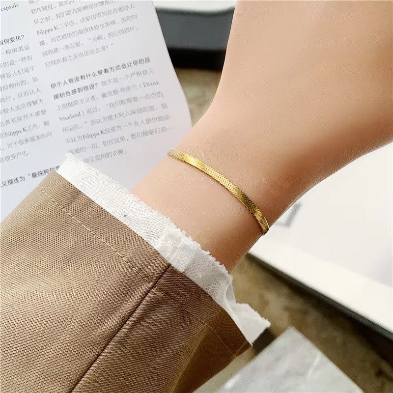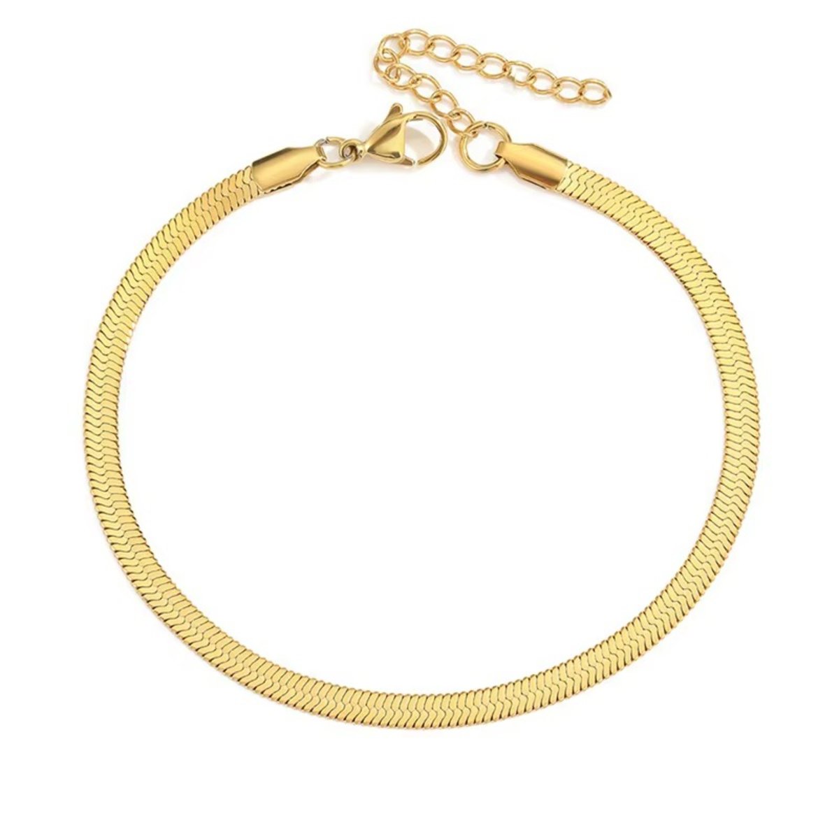 The Zarina Bracelet is a sleek, snake-inspired herringbone design that drapes effortlessly on the wrist with a liquid-like shine. Crafted in lustrous gold plating, it offers a smooth, polished finish with timeless appeal. Elegant and versatile,