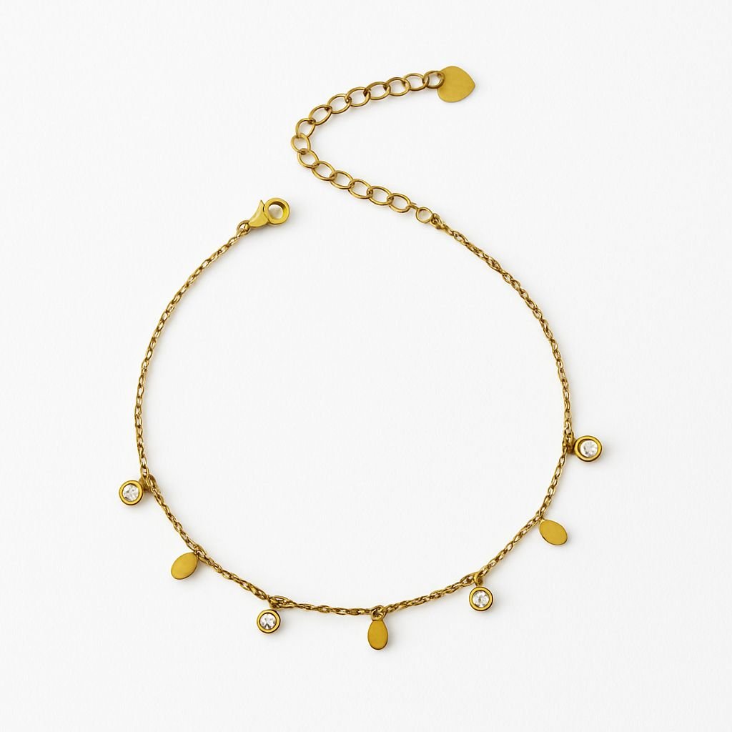 The Zei Anklet is a minimal beauty with a refined touch, featuring a sleek chain accented by a single clear stone that catches the light with every movement. Elegant in its simplicity, this anklet adds just the right amount of sparkle for everyday wear. Lightweight and versatile, the Zei Anklet is perfect for those who love subtle sophistication with a modern edge.